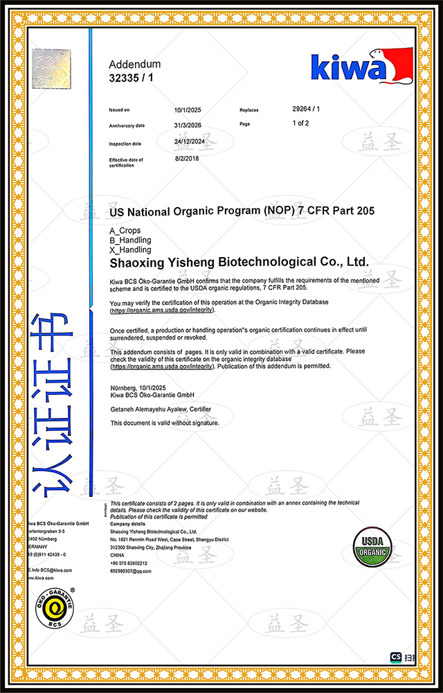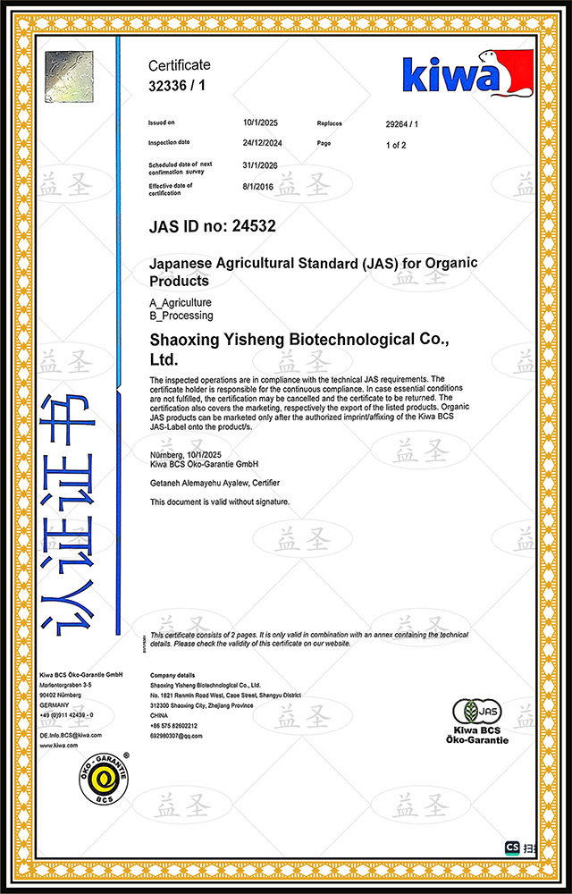 萬(wàn)事達(dá)麥業(yè)旗下益圣生物榮獲日本JAS及美國(guó)USDA有機(jī)證書